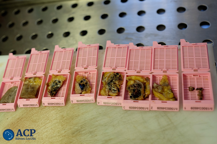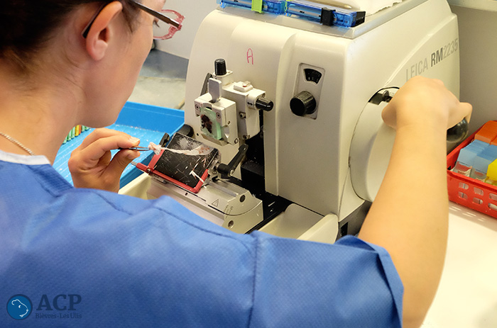 Le parcours des prélèvements se déroule en de multiples étapes, sur plusieurs jours. Chacune de ces étapes est réalisée par un professionnel qualifié et habilité, respectant des protocoles établis et validés, en accord avec les bonnes pratiques reconnues en anatomie et cytologie pathologique.