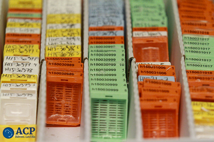 Les textes des comptes rendus sont archivés dans l’informatique. Les blocs en paraffine et les lames ayant servies au diagnostic sont archivés dans la partie laboratoire et sont gardés dix ans, en conformité avec la législation actuelle.